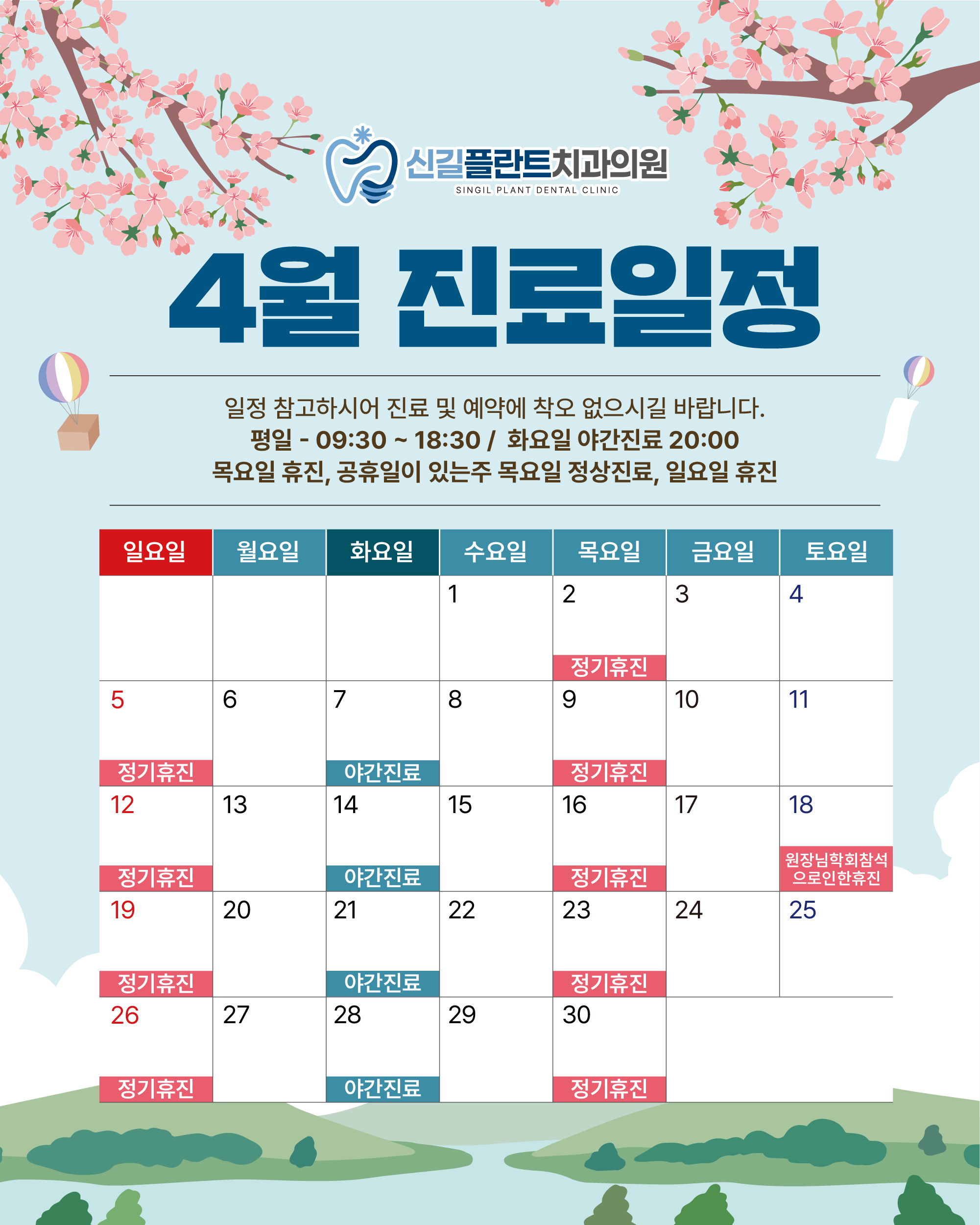 * 목요일 · 일요일 · 공휴일 휴진